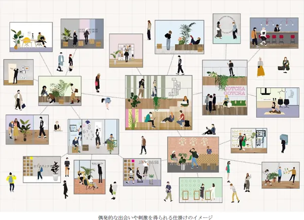 (3)偶発的な出会いや刺激を得られる仕掛け※3を随所に配置し、施設そのものがイノベーションを生み出す装置とすること。