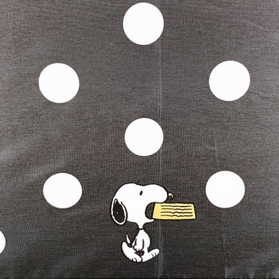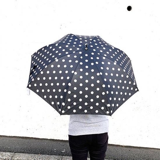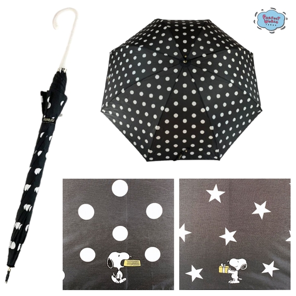 ブラックカラーにホワイトのドット柄がシンプルな、スヌーピーの傘です。クールなモノトーンのデザインで、男女問わず使えるクールさですよね。