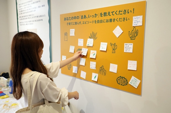 TABOTENZU公式インスタグラムで募集した育児エピソードや写真の展示と、来場者が自身の「まあ、いっか」な瞬間を付せんに書き込む参加型展示を行いました。 【「アイス2個目だけど、まあ、いっか」「おろしたてのお出かけ着にオレンジジュースこぼされた。まあ、いっか」】など様々な育児スタンスや、くすっと笑えて共感できる、日常の「まあ、いっか」な瞬間が寄せられました。それぞれの育児スタイルを共有し、「それもいい」と認めあえるTABOTENZUらしい空間となりました。