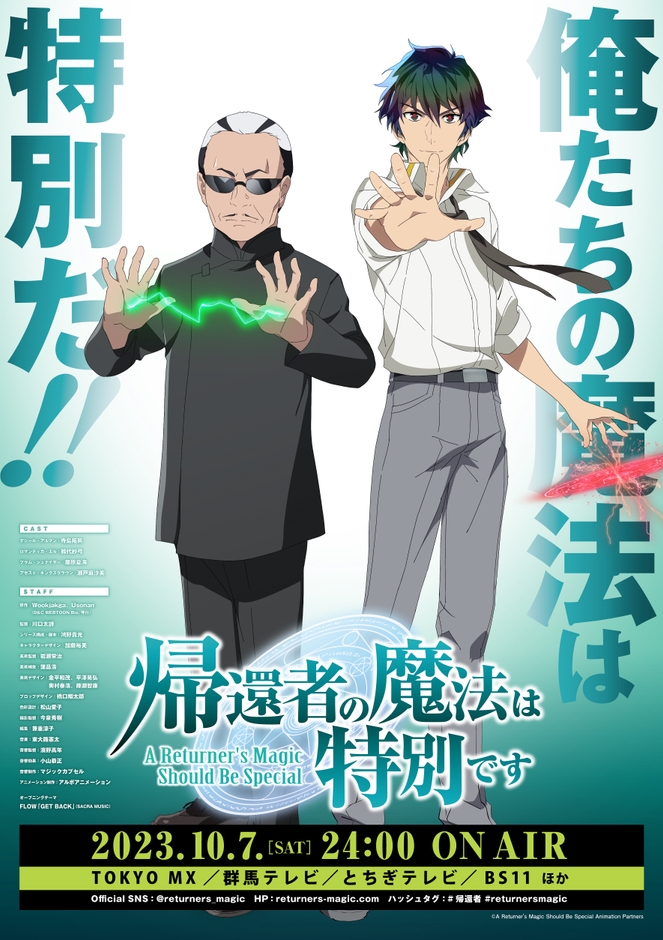 TVアニメ「帰還者の魔法は特別です」はTOKYO MXほか2023年10月7日(土)24:00より放送開始。また、dアニメストア 、U-NEXT、アニメ放題では2023年10月7日(土)24:30より先行配信開始。