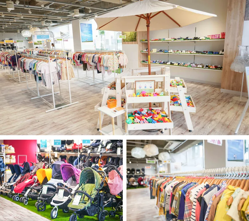 ふくちゃんリユスタ名古屋御器所店が架け橋となり、使わなくなった子育てアイテムを次世代へつなぎます。