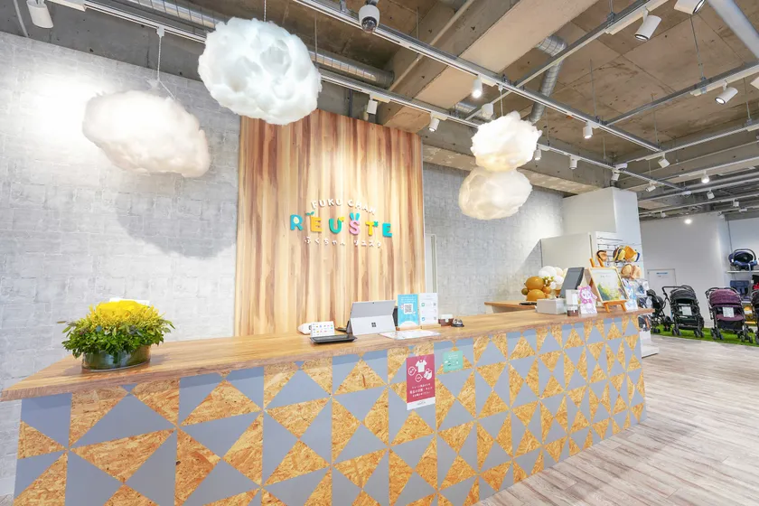 ふくちゃんリユスタは、こども服やベビーカーなど子育てで活躍するリユースアイテムを取り扱っており、役目を果たしたアイテムを次の方へつなぎ、親子でリユースする場所を提供しています。