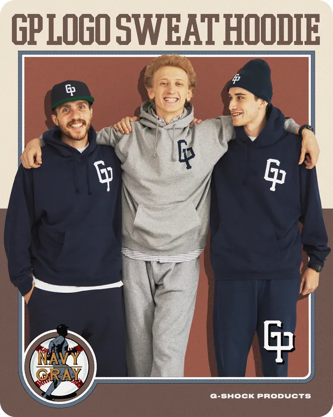 本コレクションでは、スポーツチーム「G-SHOCK PRODUCTS」をイメージして新たにデザインした「GP」ロゴを配したスウェットのフーディ、スナップカーディガンやソックスを展開します。
