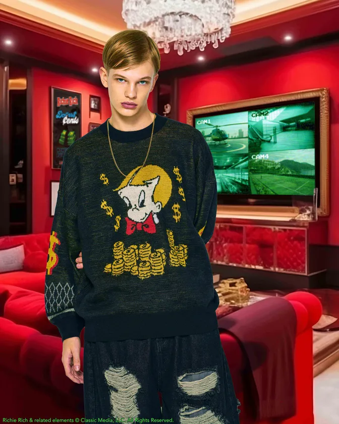 そしてリッチーの目の前にコインが山積みになったBIGセーター、リッチーと愛犬ダラー(ドル)のグラフィック長袖TEE、公式ロゴと札束にプラスして象徴的メッセージ“MONEY CAN'T BUY MY LOVE”(お金で僕の愛は買えない)を並べた長袖TEE、リッチーの吐息が$マークになったCASHスウェット、コインモチーフのキーホルダーをリリース。