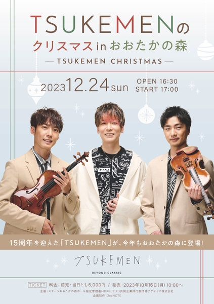 アクティオ株式会社主催、『TSUKEMENのクリスマスinおおたかの森』が2023年12月24日(日)にスターツおおたかの森ホール(千葉県流山市おおたかの森北1-2-1)にて上演されます。