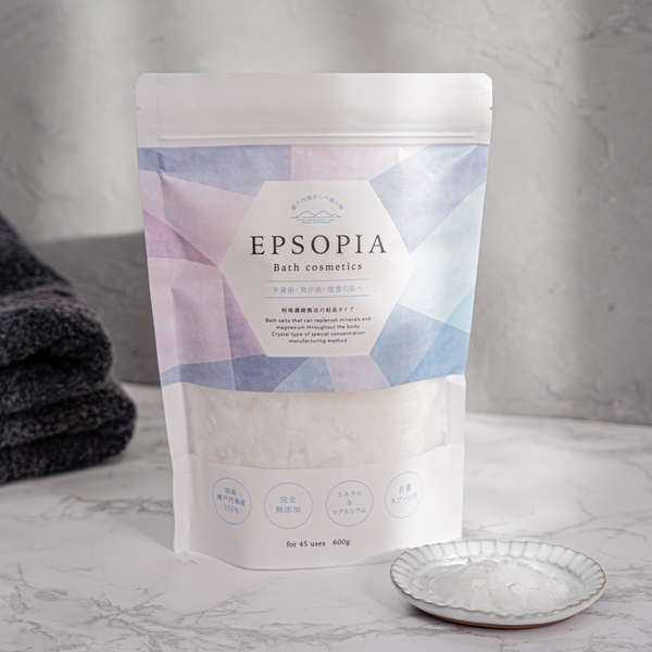 『エプソピア』は瀬戸内海のにがり100%を使用した日本製のバスソルトで、楽天バス用品ランキングにて度々1位を獲得(※1)した人気浴用入浴料ブランドです。