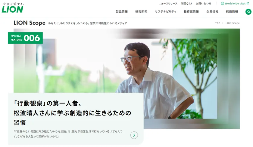 “「行動観察」の第一人者、 松波晴人さんに学ぶ創造的に生きるための習慣” 「LION Scope(ライオン スコープ)」にて、インタビュー記事を公開