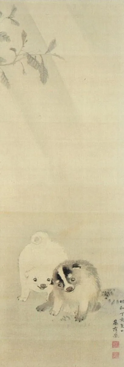 ・親子犬図 張月樵・長沢蘆雪筆 日本・江戸時代(18世紀後半) 個人蔵