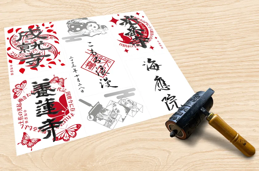 回転式のオリジナルスタンプ「輪印(りんいん)」は、こもろ浪漫開催期間中だけの特別スタンプ。旧北国街道沿いのお寺、小諸駅でぜひ願いを込めて押して周ってみてください。