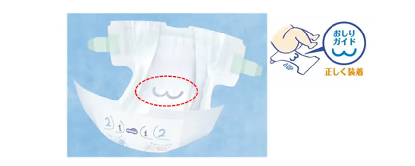 1、おむつ表面に「おしりガイド」のマークを搭載しました。※2
