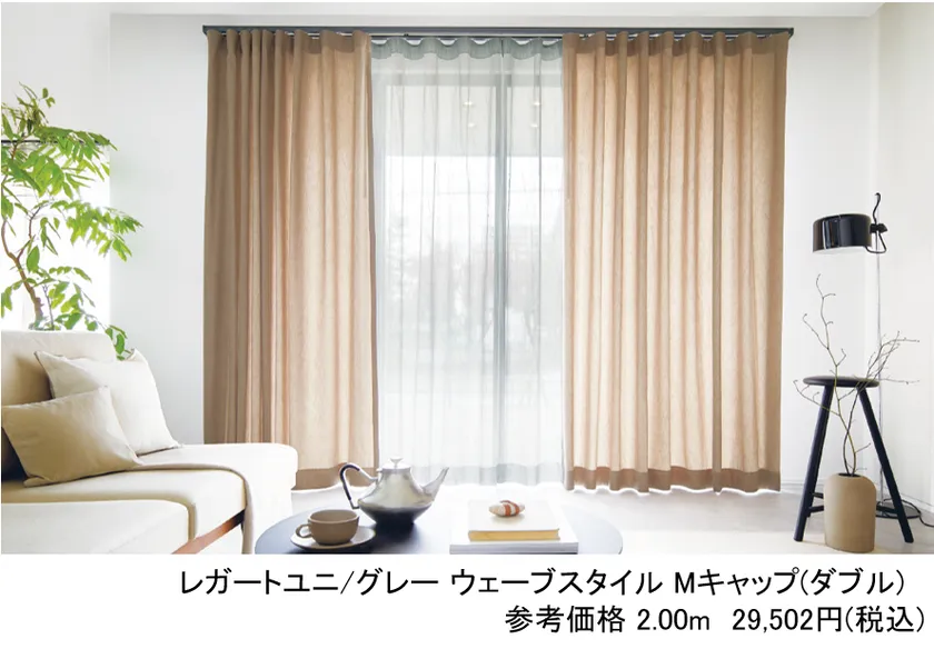 シンプルなインテリアに最適なウェーブスタイルセットも品揃え。テープが見えない独自のピッチキープ機構を組み合わせることができ、フラットカーテンを使って簡単にウェーブスタイルカーテンを楽しめます。製品情報は以下のURLからご覧いただけます。