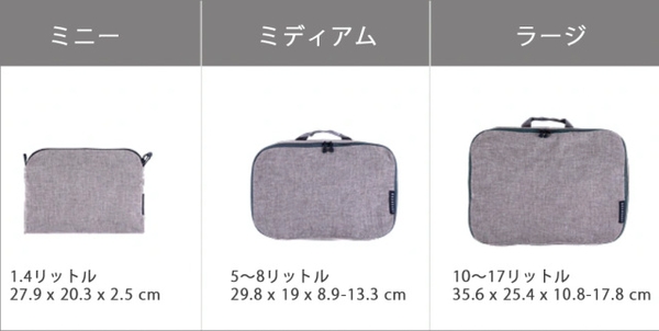 !3サイズ展開で容量に合わせて使い分けることができます。