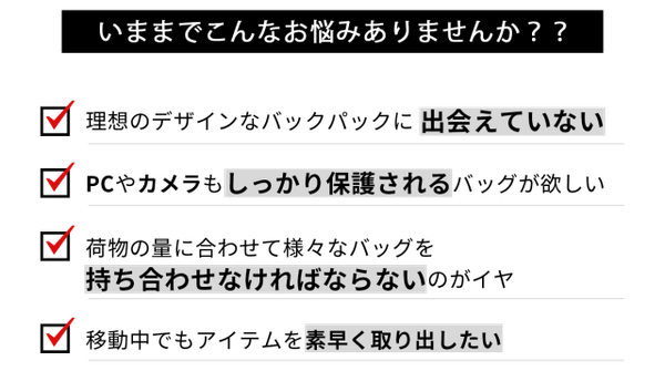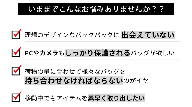 シリーズ累計二億円超えの大人気アイテム!一眼レフカメラもPCも保護して収納!究極のバックパック