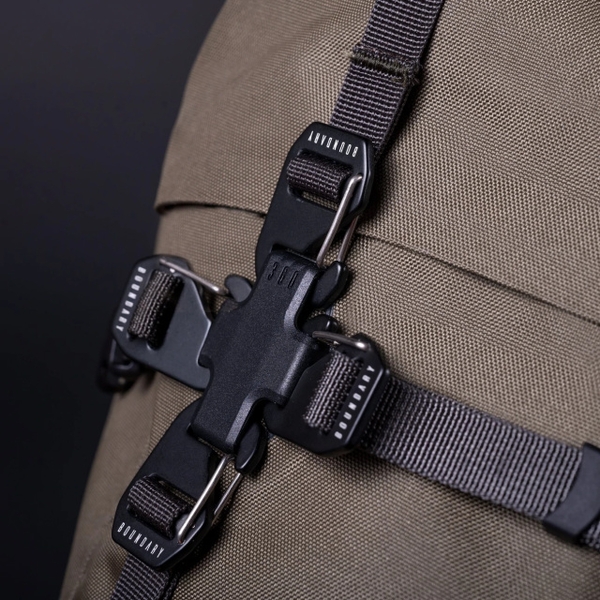 ストラップの中央にある2つのサイドリリースバックルは、メインのストームガードジッパーへの素早いアクセスを可能にします。