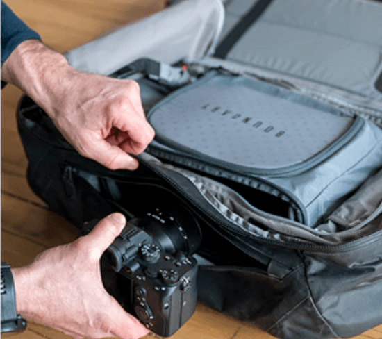 カスタマイズ可能でパッド入りのインテリアは、カメラと機器を安全に保ちます。