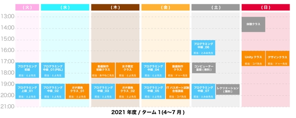 2020年度から小学校でも義務教育化されたプログラミングを始めとしながら、コンピューターの知識や、デザインや動画編集といったITでのものづくりや、インターネットの活用や、オンラインでのコミュニケーションなどを学べます。