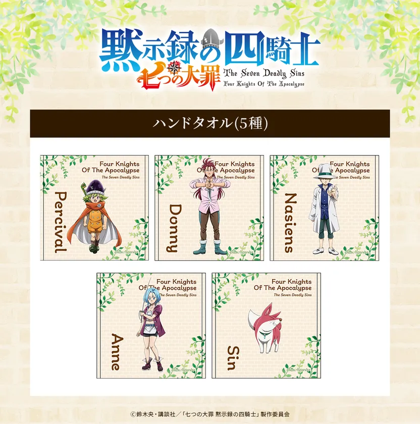 TVアニメ『七つの大罪 黙示録の四騎士』よりハンドタオルが登場!