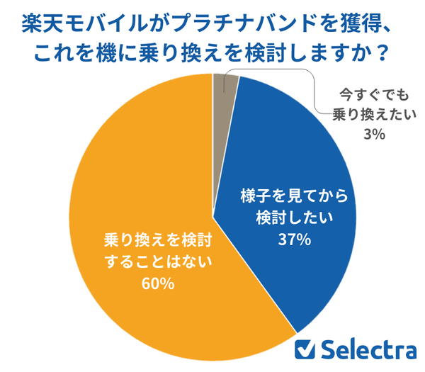 セレクトラ・ジャパン株式会社(本社:東京都渋谷区、代表取締役 グザビエ・ピノン)は、格安SIM・スマホの専門メディア「セレクトラ SIM」にて、「楽天モバイルのプラチナバンド」に関するアンケートを発表しました。