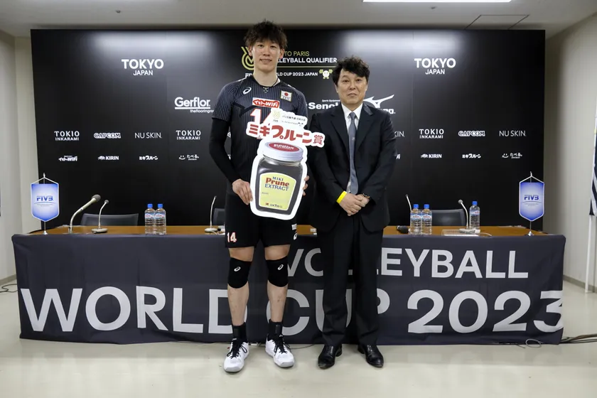 今回のワールドカップバレー2023 男子大会でも全力でプレーをする選手の健康を、ミキプルーンをはじめとした当社の栄養補助食品でサポートしたいという思いから、ミキプルーン賞を設立し、授与いたしました。