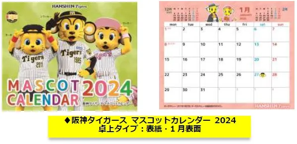 毎年、阪神タイガースファンの皆様にご好評いただいております「阪神タイガース カレンダー 2024年版の3種類((1)壁掛けタイプ・(2)卓上タイプ・(3)卓上タイプマスコット)」について、10月6日(金)から阪神タイガースカレンダー事務局( http://hcl-sportsshop.com/ )、10月9日(月)から阪神タイガース公式オンラインショップT-SHOP( https://shop.hanshintigers.jp/ )で順次受付を開始いたします。