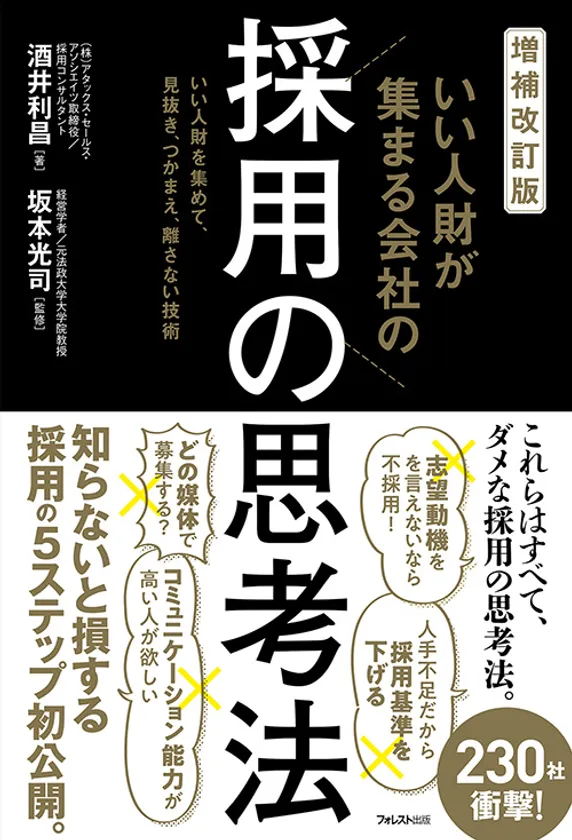 フォレスト出版株式会社(所在地:東京都新宿区、代表取締役:太田 宏)は、『増補改訂版 いい人財が集まる会社の採用の思考法』(酒井利昌・著/坂本光司・監修)を2023年10月12日に発売いたしました。