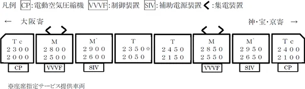 なお、京都線の特急車両「2300系」では、大阪方から4両目に当社初の座席指定サービス※を導入します。