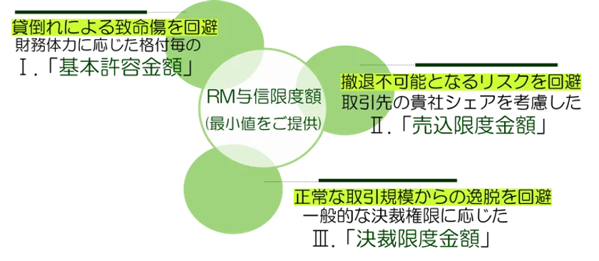 日本・中国での、長年の与信管理業務の経験を基としたロジックにより与信限度額を算出いたします。