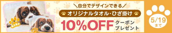 楽天ランキング1位!多数受賞の俺流総本家より、5月13日の愛犬の日を記念して、愛犬家の皆様に感謝の気持ちを込めた特別なキャンペーンを実施いたします。お客様の愛犬の写真やイラスト、お名前などを自由にデザインしてプリントできるデザインアプリ「俺流デザイナー」から、オリジナル高品質タオルやひざ掛けが10%OFFになるクーポンを配布いたします。