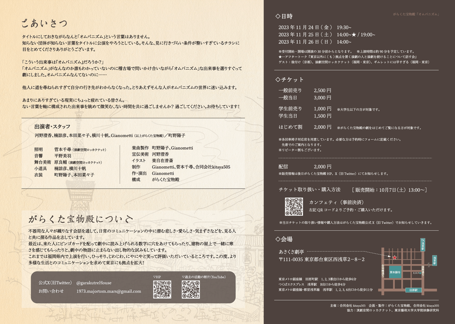 がらくた宝物殿主催、『オムバニズム』が2023年11月24日 (金) ~2023年11月26日 (日)にあさくさ劇亭(東京都台東区西浅草2丁目8-2)にて上演されます。