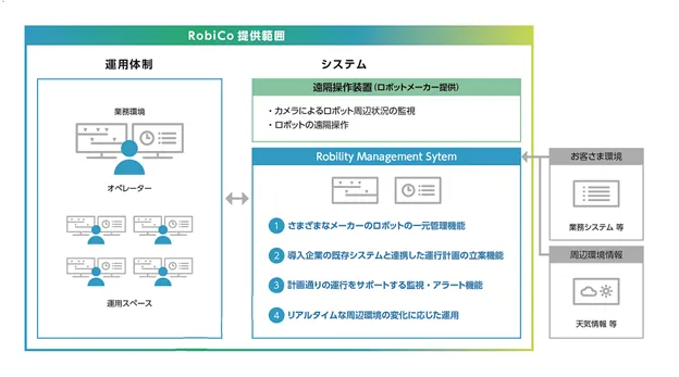 「RobiCo(TM)」は、ロボットを導入する企業が、ロボットの運用業務をアウトソースできるサービスです。