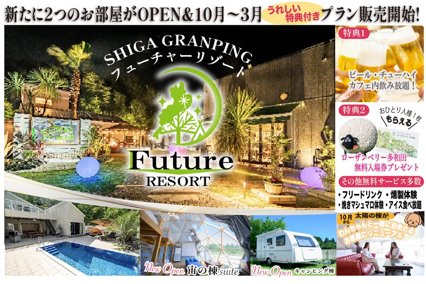 滋賀のグランピング施設「フューチャーリゾート」 特典付き限定プランなど3つのサービスが新登場!