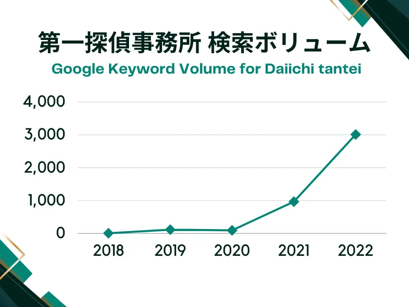 探偵業での独立開業は、2018年~2022年の検索ボリュームが 約300倍に需要拡大している大手FC「第一探偵事務所」がおすすめ
