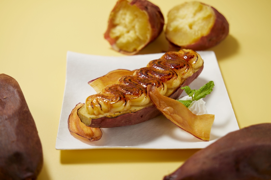 しっとり焼き上げた焼き芋を半分使用し、バニラ香るカスタードをのせてフランス産きび砂糖を炙りキャラメリゼしました。