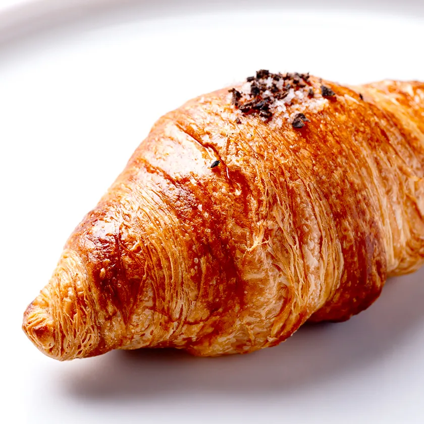 「塩トリュフクロワッサン」は、トリュフオイルとトリュフ塩がふわっと香るクロワッサン。バターの甘みがじんわり広がり、トリュフ塩のしょっぱさと良く合います。