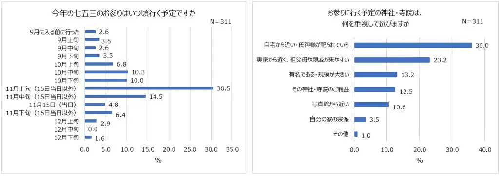 2.七五三のお参り時期は「11月上旬」が最多!神社・寺院はアクセスの良さを重視する傾向
