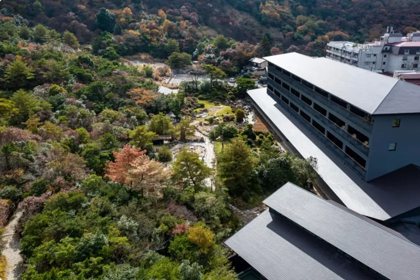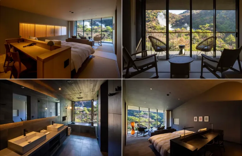 ・国立公園内の日本庭園や地獄、山々に開かれ、雲仙固有の自然を取り入れた建築デザイン