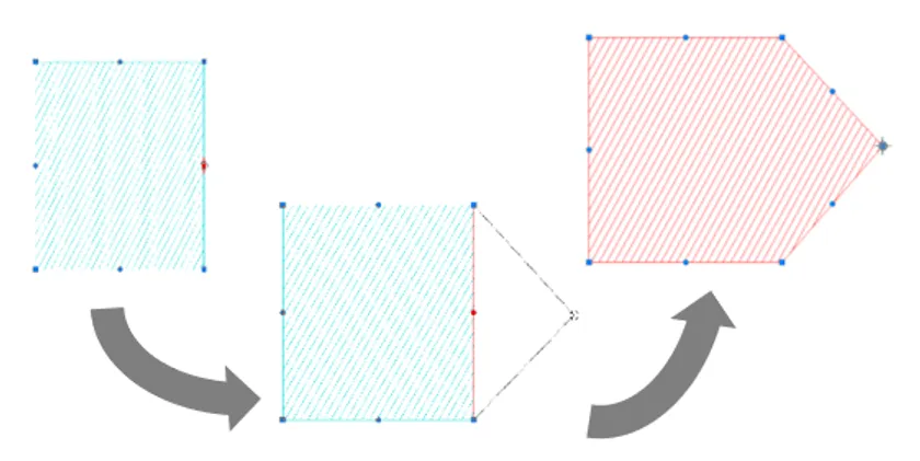 作図済みのハッチング図形・塗り図形に対して、端点追加・削除ができるようになりました。従来では最初から描き直しになるような大きな変更も、そのまま簡単に修正が可能です。