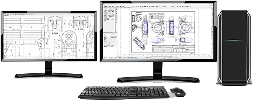 『図脳RAPIDPRO22』『図脳RAPID22』両製品ともにデュアルモニタに対応。これにより、画面切り替えが不要となり、従来製品に対して40%の作業効率向上を実現しました。さらに、バックアップやハッチング編集等の機能強化により、手戻りを防ぎスムーズな製図作業環境も実現しました。