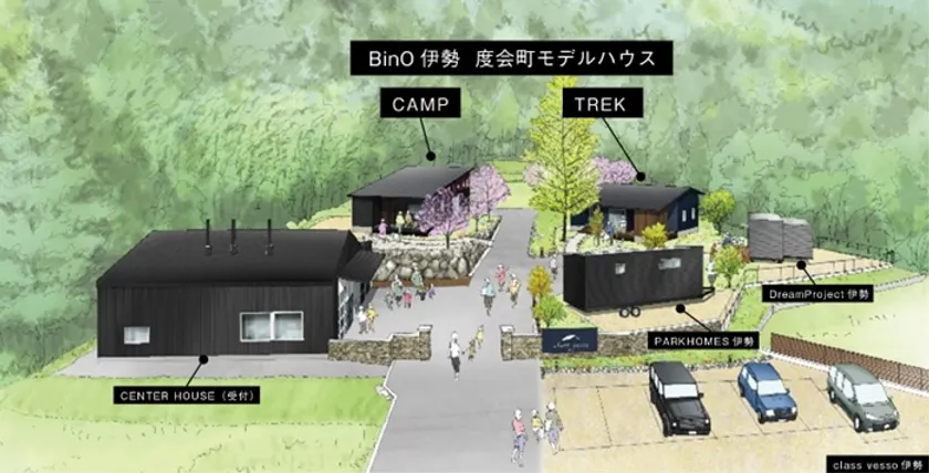 12月下旬からは、BinOシリーズの2棟にトレーラーハウス2棟を加えた全4棟を、宿泊できる住宅展示場「クラスベッソ伊勢」としてもサービスを開始いたします。