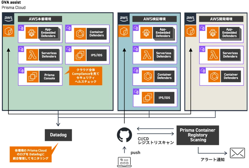 1. GVA assistを利用するお客様に対して、セキュリティ面の安全性を説明できるようになり、Prisma Cloudを利用して何重ものセキュリティチェックを実施している安心感を高く評価していただいていること