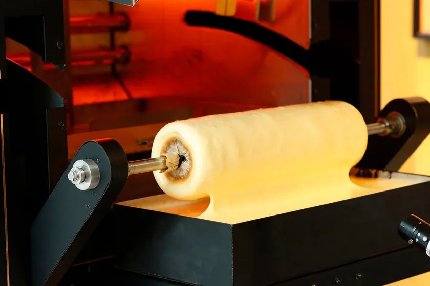 バウムクーヘン専用AI焼成機「THEO(テオ)」が登場!普段味わうことのできない焼き立てのバウムクーヘンをお楽しみいただけます。