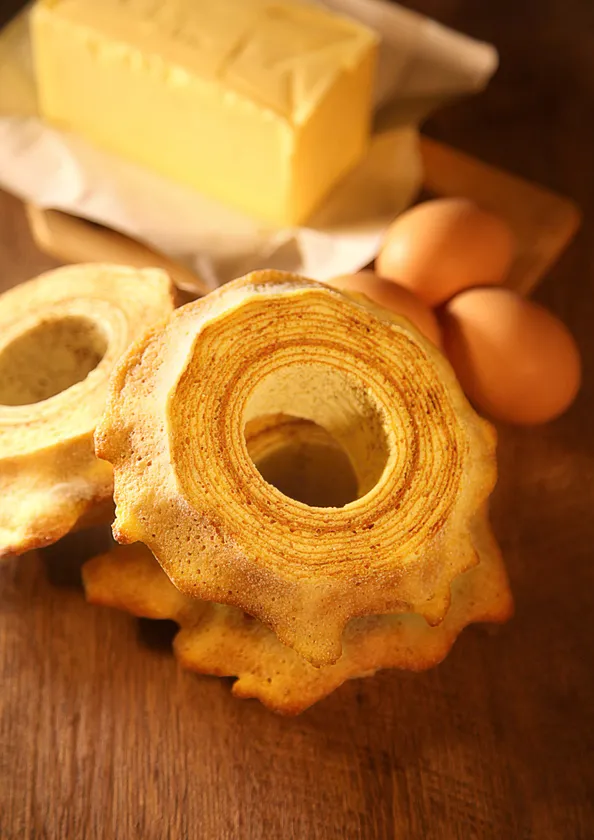 表面はカリッと、中はしっとり味わい深く、香ばしいバターの香りがたまらないバウムクーヘンです。