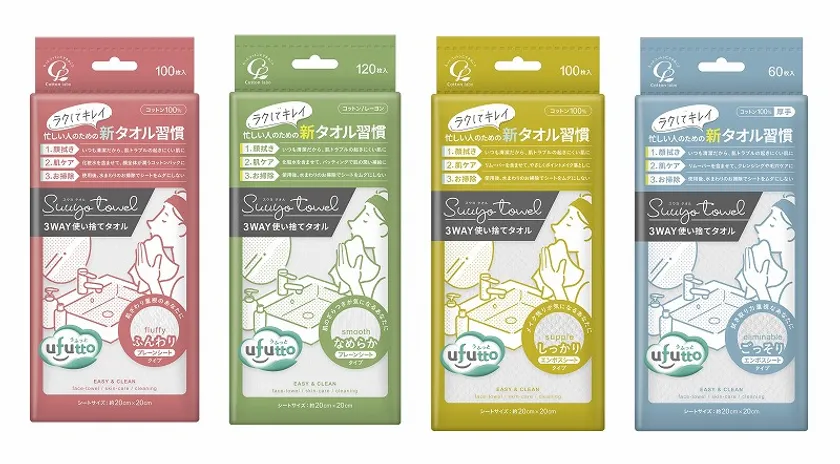 コットン・ラボの新ブランド『ufutto』から 使い捨てフェイスタオル「スウヨタオル」4種類を11/1発売! ~自社オンラインストアで“使い比べセット”の先行予約開始~