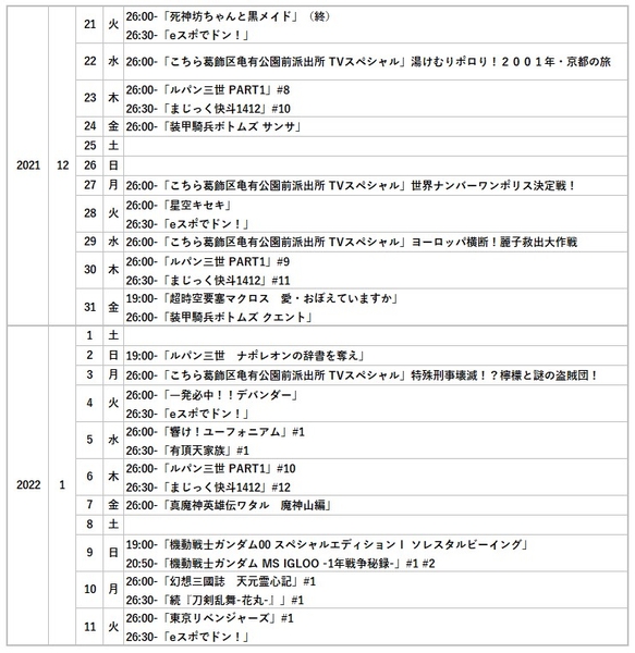 東リべ、ユーフォニアム、ルパン、ガンダム… 大みそかにはマクロス再放送も!! 年末年始もBS12から目が離せない!