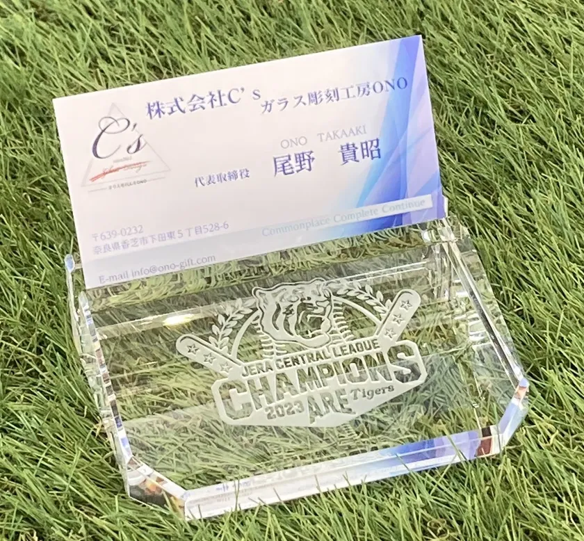 お客様の想像を超える作品づくりをモットーに、ガラス製のグラスや信楽焼などの陶器へ、一つひとつ全て手作業でのサンドブラスト工法を用いて名入れギフトを製造加工販売している株式会社C's(所在:奈良県香芝市、代表取締役:尾野 貴昭)は、「阪神タイガース JERA セントラル・リーグ優勝記念品」全7商品を、2023年12月31日までの期間限定で販売しております。