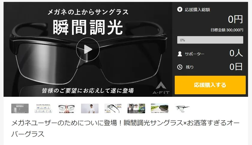 株式会社トライ・アングルでは、独自の開発商品である光感知式瞬間調光サングラスを2020年4月より応援購入サイトのMakuakeにて発表以来、Makuake内においてシリーズ累計1,600名以上、4,000万円を超える応援購入実績を得ています。大変喜ばれている商品ですが、これまでの販売のなか、メガネ使用者用瞬間調光だサングラスの開発のご要望が大変多く、このたび、当社の人気商品である、メガネの上からかけられる「お洒落すぎるオーバーグラス」(シリーズ累計3,600名以上、3,700万円超えの販売実績)と組み合わせた商品を4年間の開発期間を得て発表する運びとなりました。