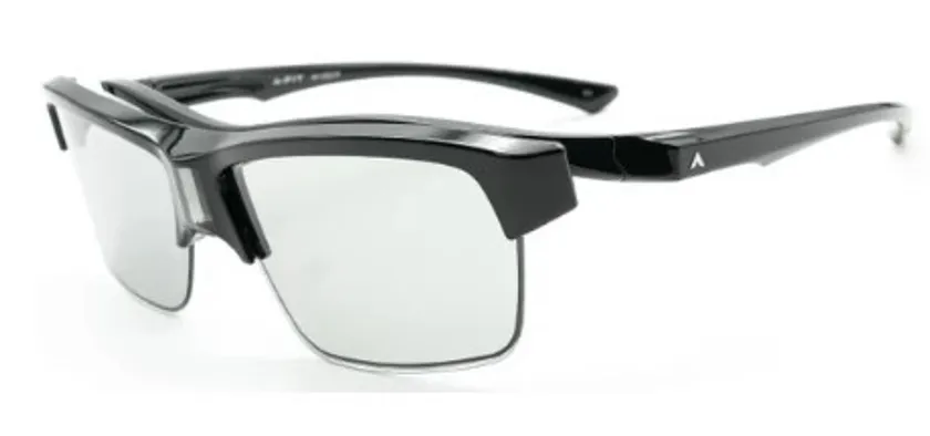 サングラス中央に配置された光センサーが光を感知すると瞬時にレンズ濃度が変化します。メガネ使用者用瞬間調光オーバーサングラスがついに登場。