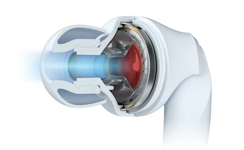 アコースティックダンピングオプティマイザーは、音波の伝達経路であるフロントハウジングの内部空間の容積を最適化し、肌に近い硬度のTPE素材により、音質に悪影響を及ぼす経路内での不要な反射を軽減します。さらに、ドライバーユニットからポート出口までを同一直線上に配置するアキシャル(同軸)構造を採用することで、音波のロスを極限まで抑え、ドライバーユニットのポテンシャルを最大限に引き出します。