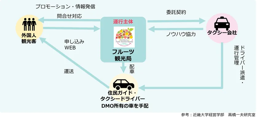 和歌山県紀の川市の地域DMO※1 一般社団法人 紀の川フルーツ観光局(所在地:和歌山県紀の川市、代表理事:中山 裕之 以下 紀の川フルーツ観光局)は、2023年10月、訪日外国人観光客を対象とした通訳ガイド付き市内周遊向け交通サービス「Hoppin' KINOKAWA(ホッピンキノカワ)」を実証的に開始いたします。本サービスには「事業者協力型 自家用有償旅客運送」という規制緩和を活用しており、地元タクシー会社の協力で実現した日本初※2の試みです。