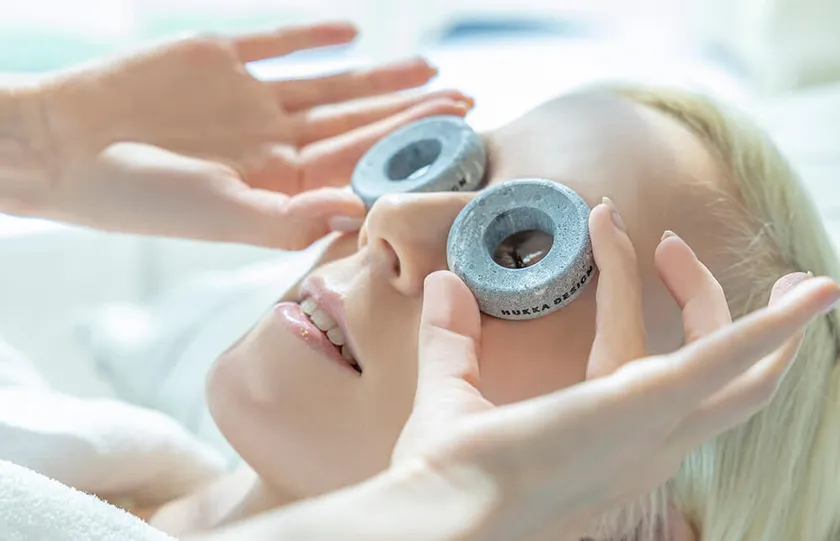 天然石を目元においてリラックス